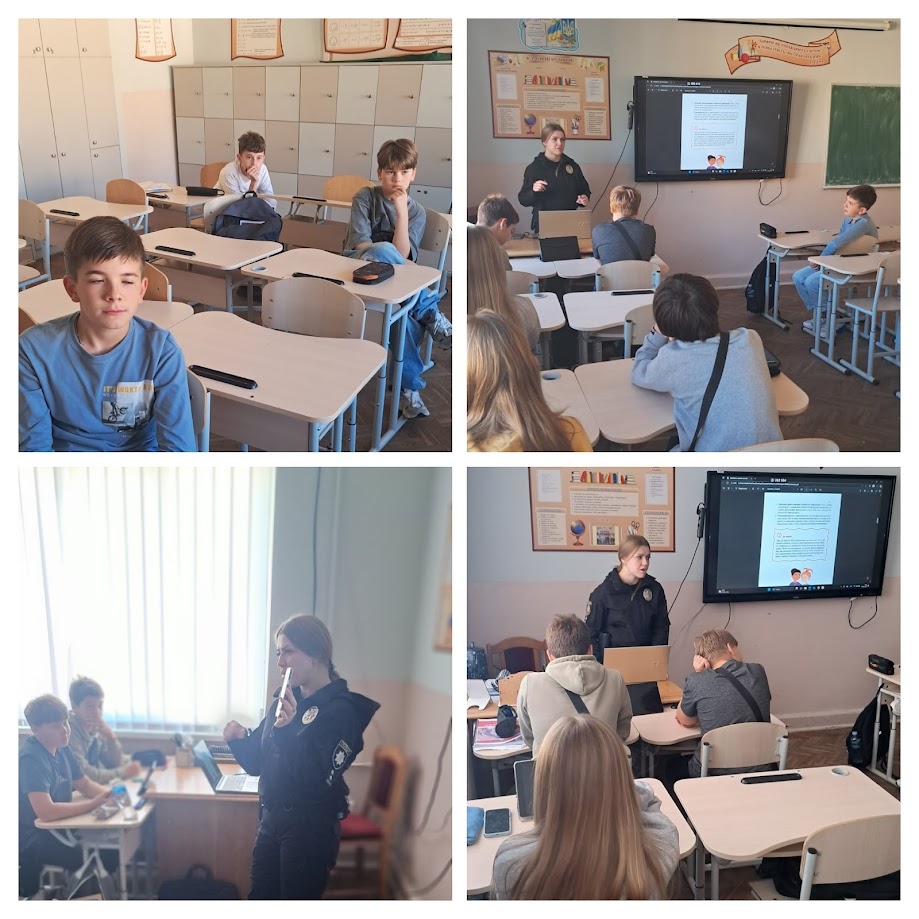 26.09.25року у 7-Д класі проведено виховну годину”Протидія булінгу”. Перед учнями виступила представниця поліції Гладій Вікторія Романівна, яка ознайомила із видами булінгу,методами боротьби та захисту, наголосила на небезпеці для всіх учасників освітнього процесу. Учні переглянули презентацію про реальні випадки булінгу та відповідальність підлітків за свої вчинки.Учні жваво обговорювали переглянуте, розгорнулась цікава дискусія. Вікторія Гладій наголосила,що важливо вчасно звертатись по допомогу, надала інформацію куди та номери телефонів.
