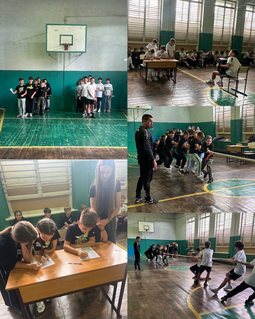 Сьогодні відбувся яскравий конкурс між учнями 7-В та 7-Г класів. Діти змагалися у спритності, силі та кмітливості: бігали в «Козацькій естафеті», перетягували «булаву», відповідали на історичні питання та навіть вгадували козацькі пісні