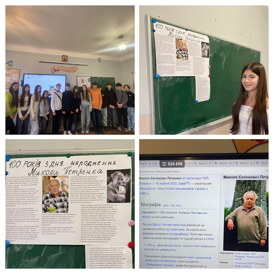 Сьогодні учні 8-В класу Стрийської гімназії №4 разом із класним керівником Федько О. М.провели урок памʼяті до 100-річчя з дня народження львівського письменника Миколи Петренка