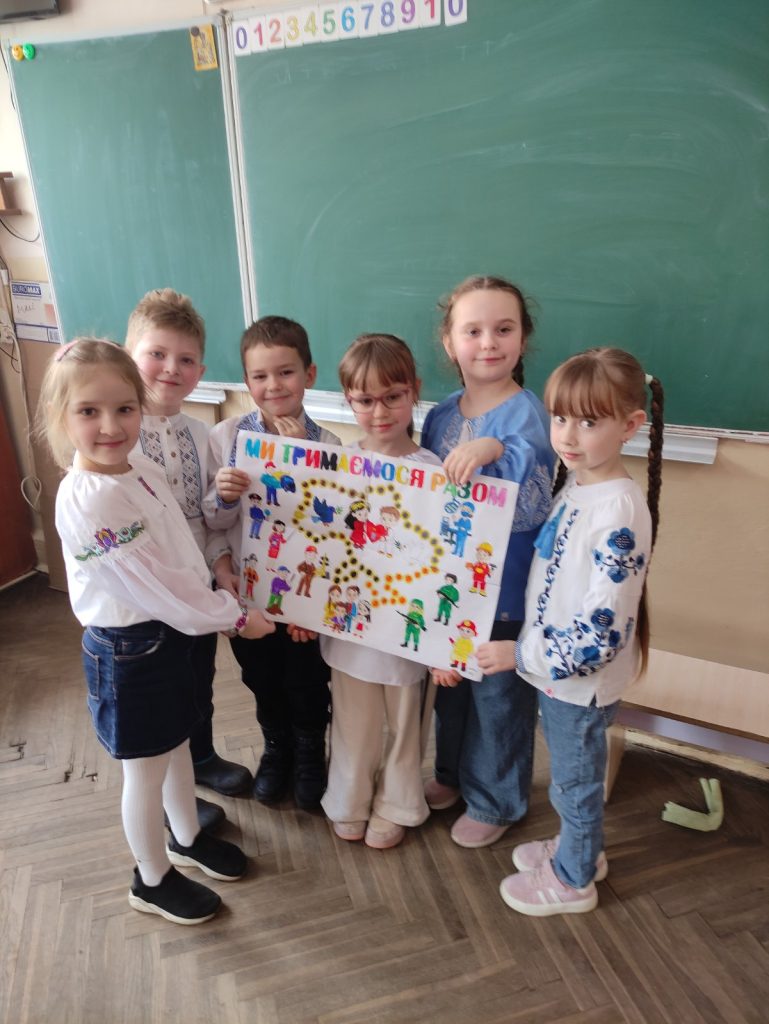 Цей тиждень був багатий на події.І всі дуже важливі для нашої держави і для кожного українця.Тож учні 1-Б класу ( класний керівник Н.О.Проненко)відзначили День єднання створенням плакату співпраці ” Ми тримаємося разом”. 19 лютого долучилися до акції Ангели пам’яті,присвяченої Героям Небесної Сотні. А 20 лютого провели флешмоб до Дня рідної мови. Змалечку єднаймося навколо своєї історії, мови, шануймо наших Героїв.